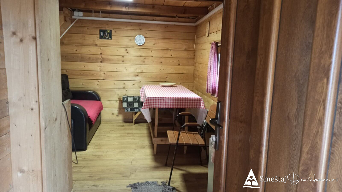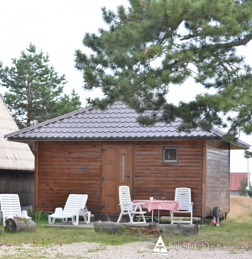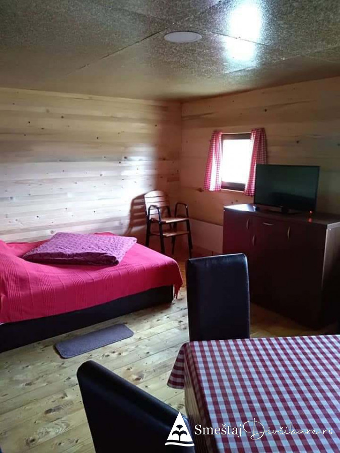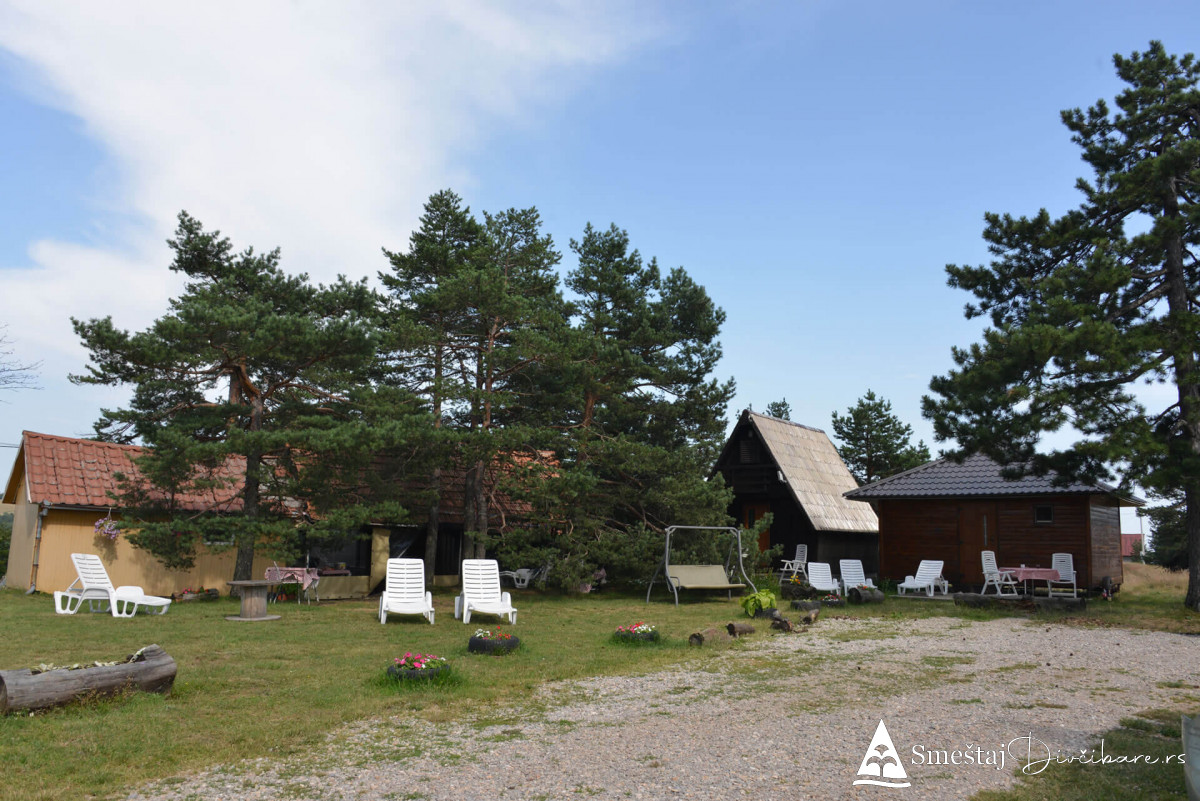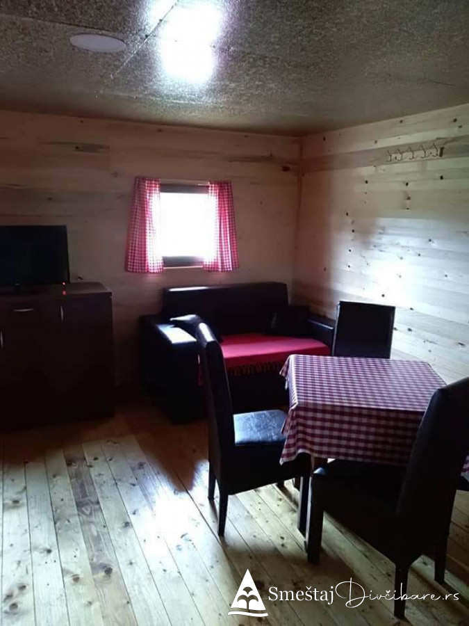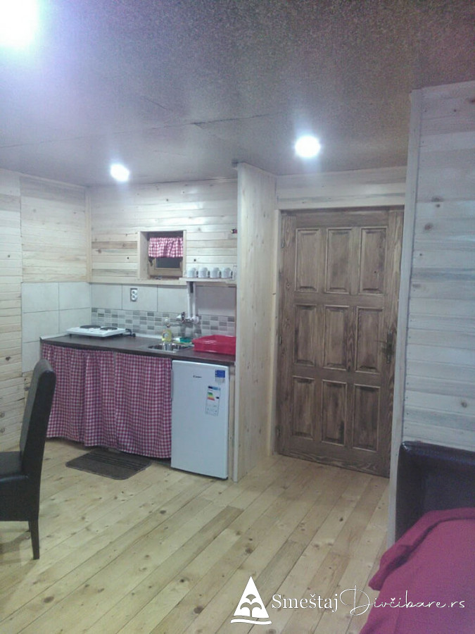 Posedujemo tri brvnare apartmanskog tipa. Prva je za 6, druga za 4 osebe i treća za 4 osobe. Prve dve brvnare imaju komplet opremljenu kuhinju, kupatilo, dnevni boravak i spavaci deo sa tv. Treća brvnara je tipa studio. Gosti mogu koristiti rostilj i kotlic. Obezbedjen parking. Dvoriste je veliko i ravno, pogodno za igru dece i Vase uzivanje. Okruzeni smo borovom sumom sa jedne strane i sa lepim pogledom na skijasku stazu i celo Divčibare.