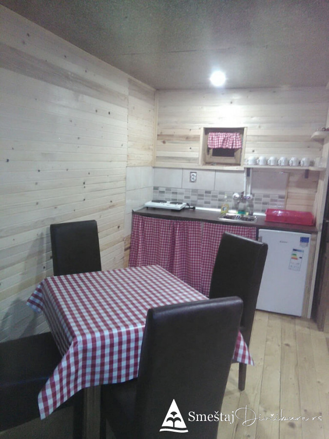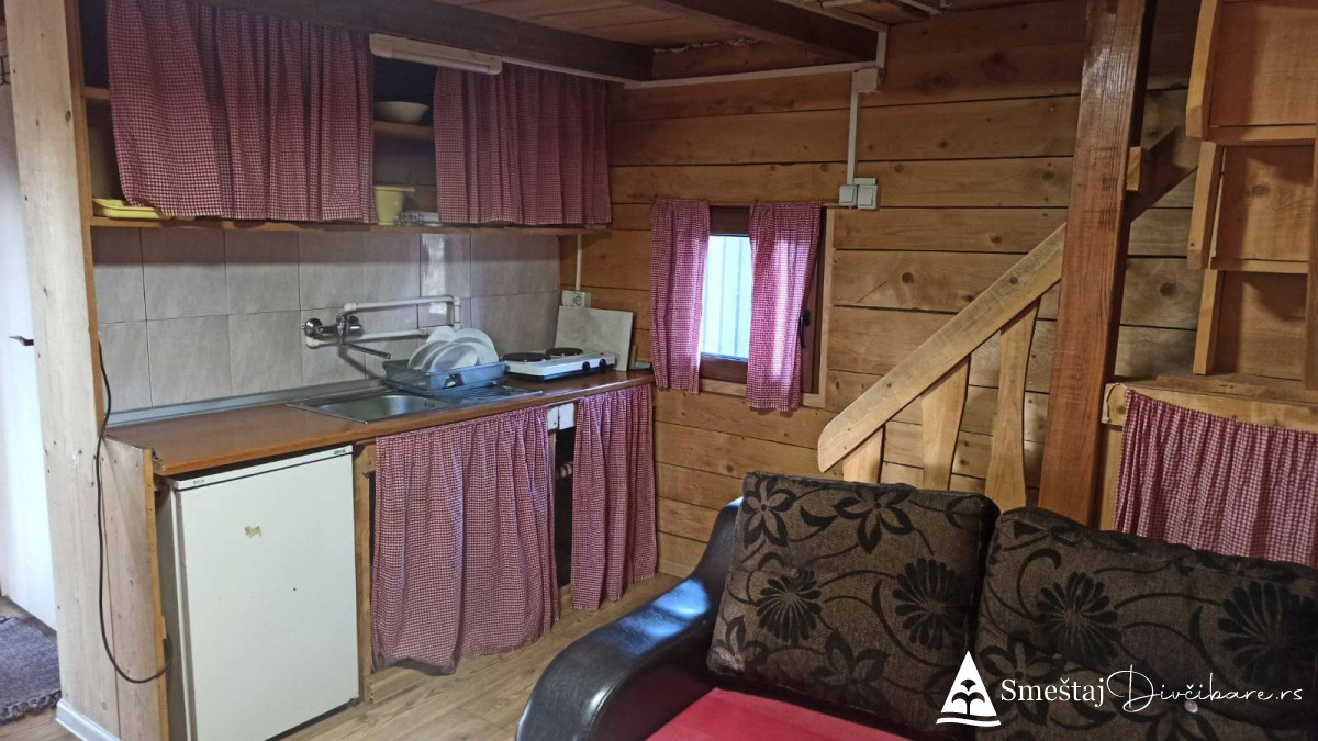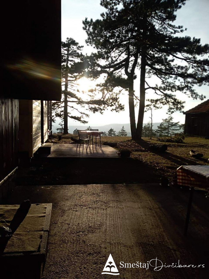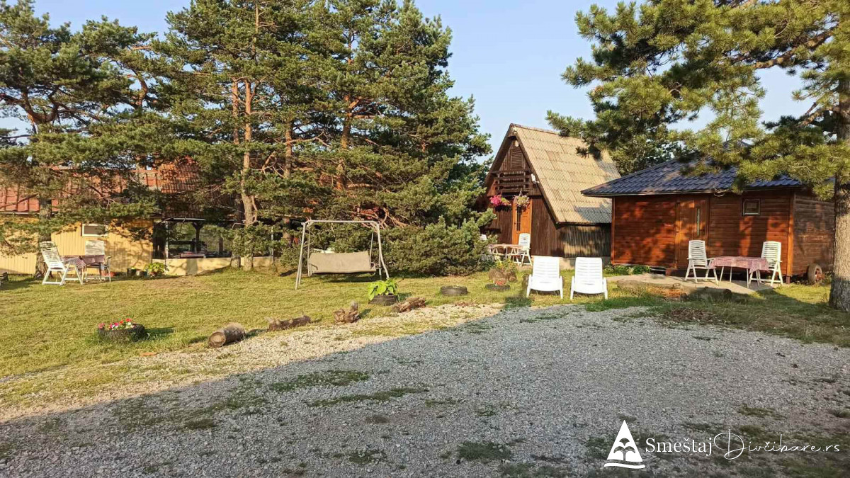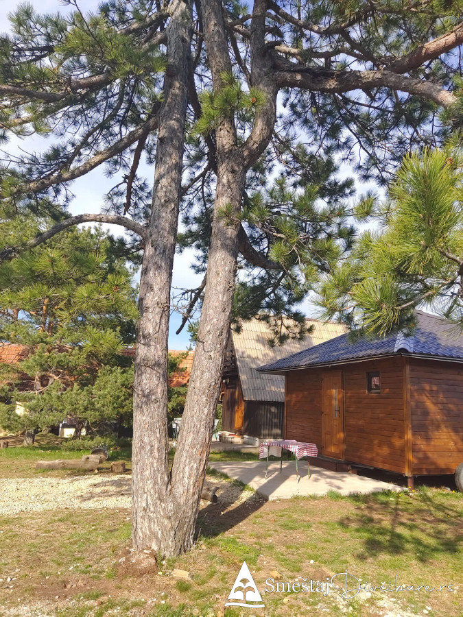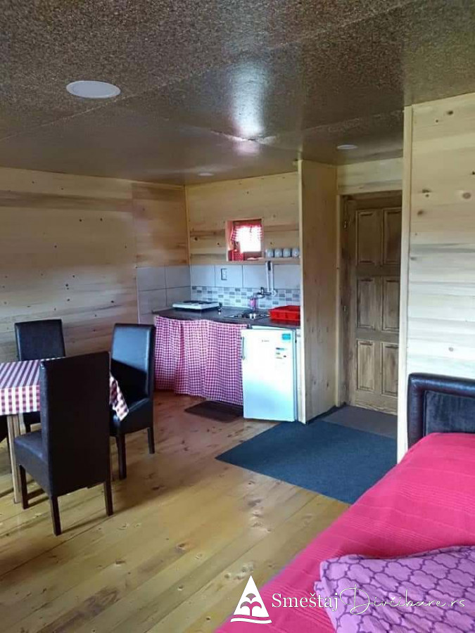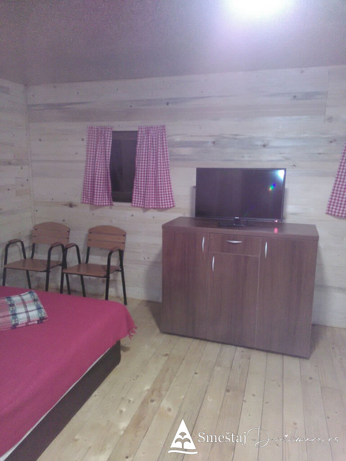 Posedujemo tri brvnare apartmanskog tipa. Prva je za 6, druga za 4 osebe i treća za 4 osobe. Prve dve brvnare imaju komplet opremljenu kuhinju, kupatilo, dnevni boravak i spavaci deo sa tv. Treća brvnara je tipa studio. Gosti mogu koristiti rostilj i kotlic. Obezbedjen parking. Dvoriste je veliko i ravno, pogodno za igru dece i Vase uzivanje. Okruzeni smo borovom sumom sa jedne strane i sa lepim pogledom na skijasku stazu i celo Divčibare.