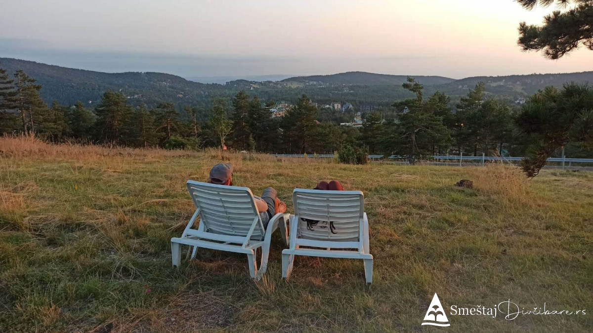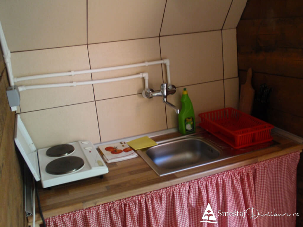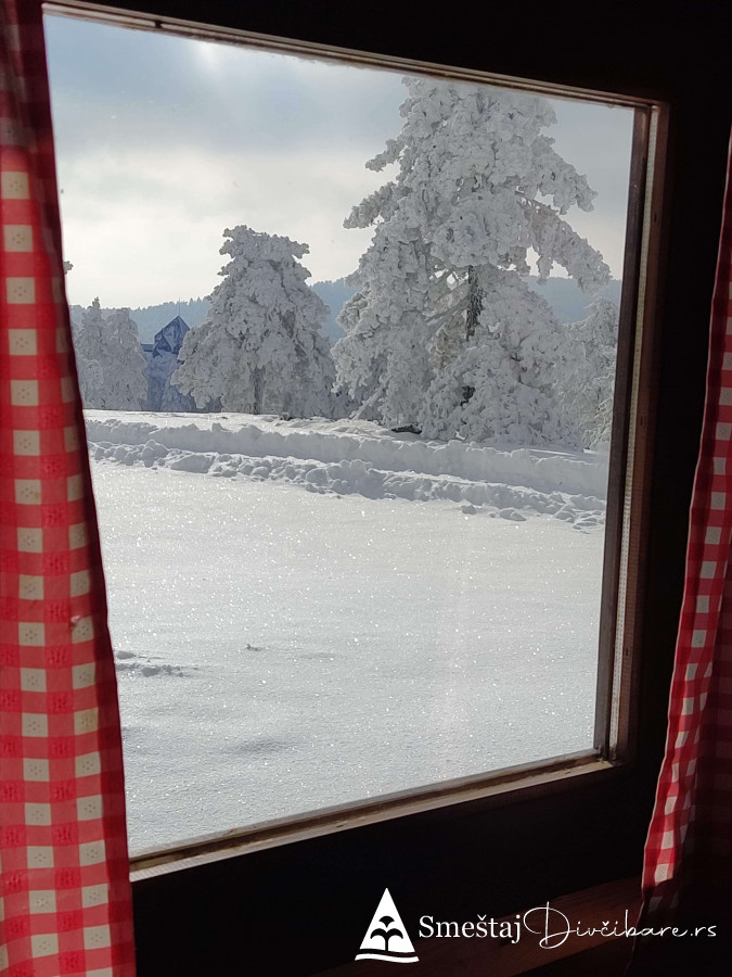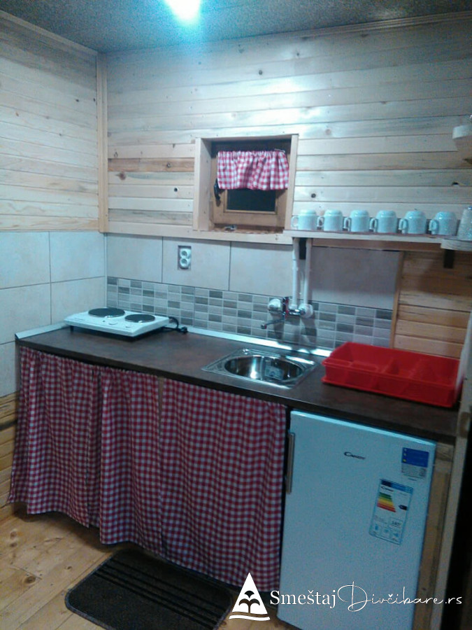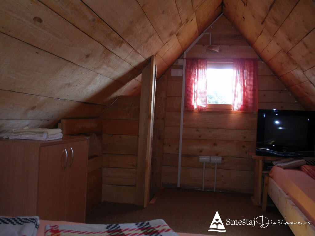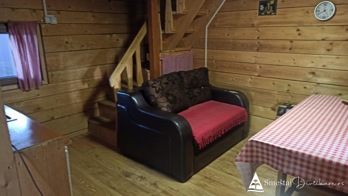 Posedujemo tri brvnare apartmanskog tipa. Prva je za 6, druga za 4 osebe i treća za 4 osobe. Prve dve brvnare imaju komplet opremljenu kuhinju, kupatilo, dnevni boravak i spavaci deo sa tv. Treća brvnara je tipa studio. Gosti mogu koristiti rostilj i kotlic. Obezbedjen parking. Dvoriste je veliko i ravno, pogodno za igru dece i Vase uzivanje. Okruzeni smo borovom sumom sa jedne strane i sa lepim pogledom na skijasku stazu i celo Divčibare.