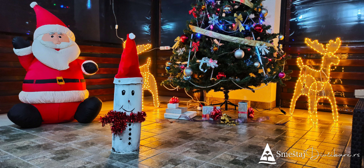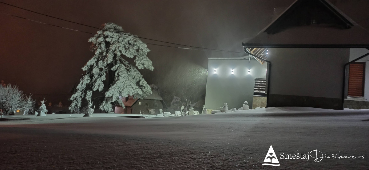 Mozemo se pohvaliti sa ogromnom natkrivenom terasom na koju se izlazi iz dnevnog boravka. Vila poseduje ogromno dvorište i obezbđjen svoj privatni parking u samom dvorištu. Vila ima jedan od najlepših pogleda ka ski stazi "Crni Vrh" i ski stazi" Centar".